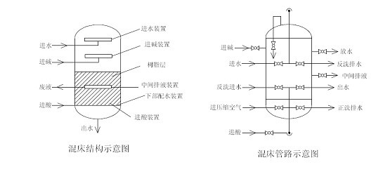 程中,由于均勻混合狀態(tài),交錯排列,互相接角,可以看作是許多的陰陽離子交換樹脂而組成的多級雙床
